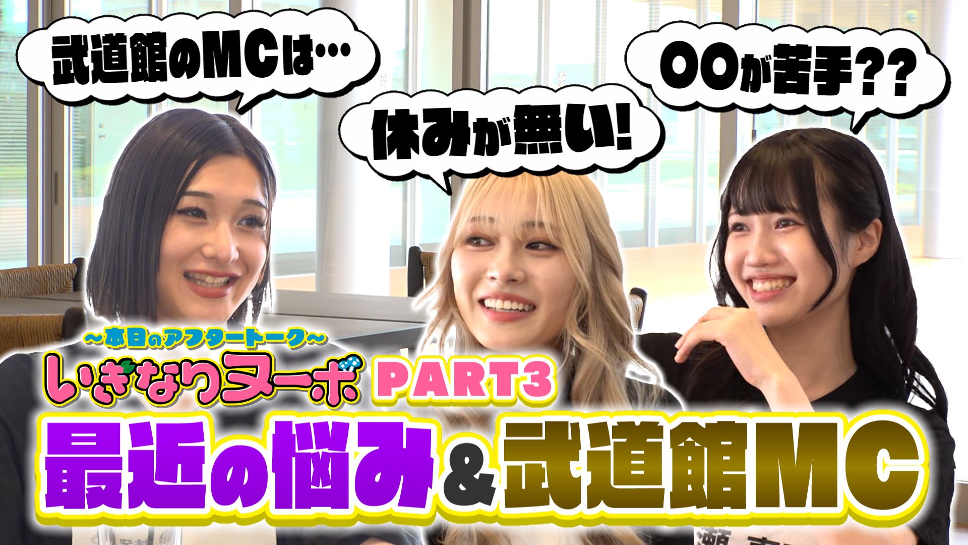 ▼「いぎなりヌーボ~本日のアフタートーク~」安杜羽加、北美梨寧、吉瀬真珠が大盛況に終わった武道館公演について語り合う。「あの衣装って実は」「曲数が減る可能性も」…など裏側トークが止まらない!【めざせ地上波 いぎなり配信中!】東北出身の9人組グループ「いぎなり東北産」の全力バラエティ!東北愛全開!地元を盛り上げるべく、さまざまな企画に挑戦中!