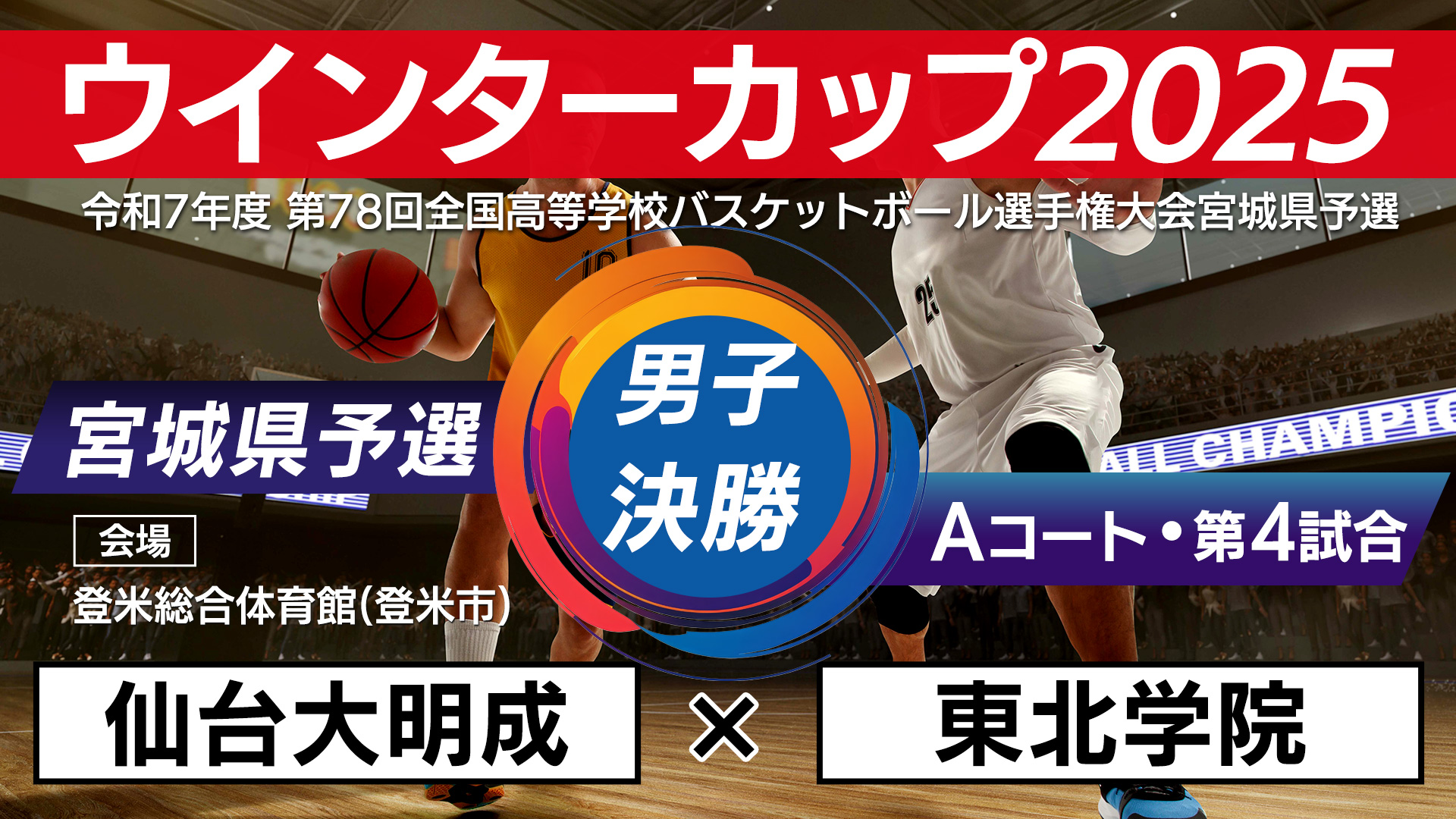 【男子 準決勝】「仙台大明成×東北」SoftBank ウインターカップ2025 宮城県予選開催日:2025年10月18日(土)~19日(日)開催場所:登米総合体育館/中田アリーナ -